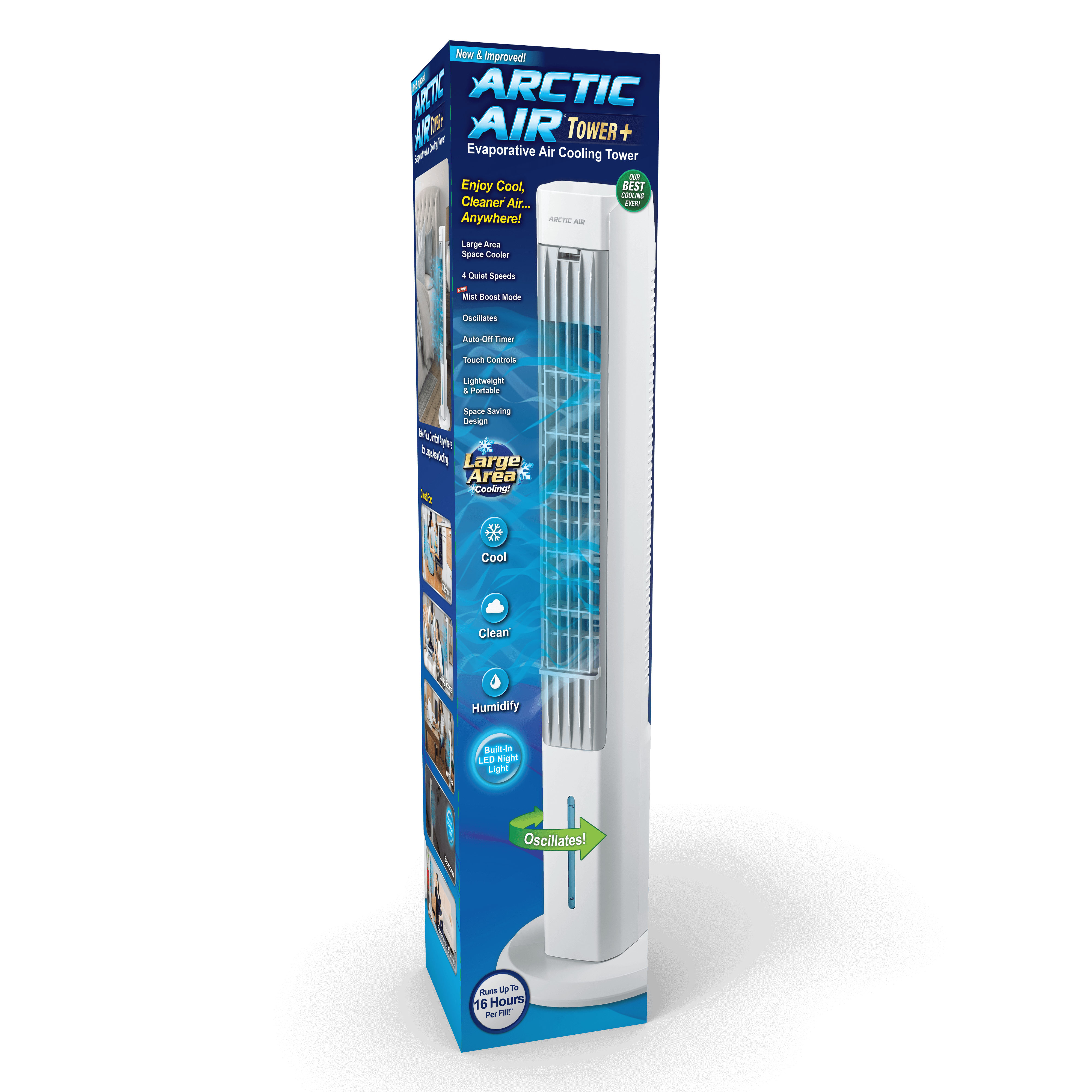 Arctic Air® Tower + is the evaporative air-cooling tower that helps cool and humidify any space! So you can be comfortable virtually anywhere, designed for larger area cooling!